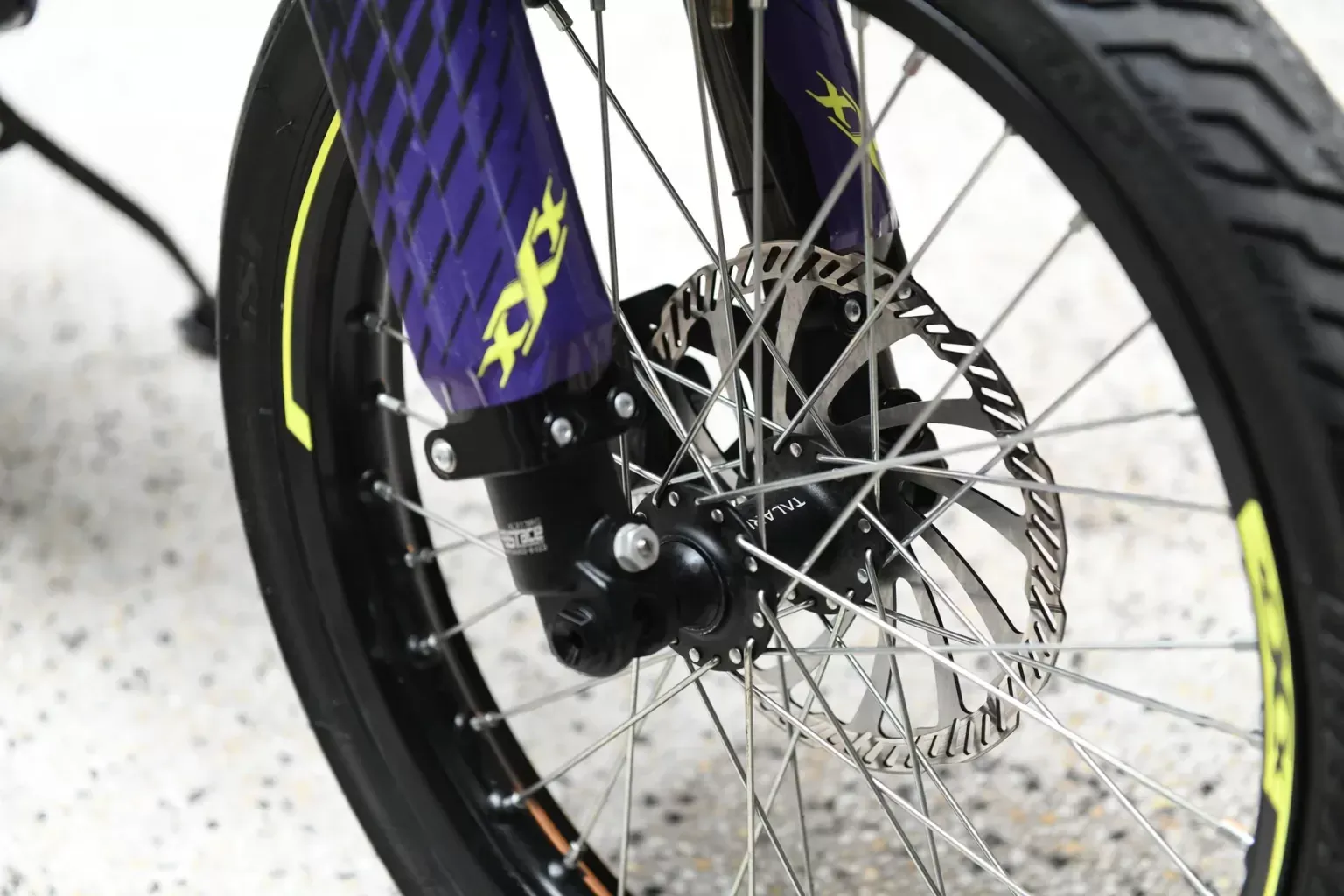 The adjustable suspension and powerful brakes ensure a smooth, controlled ride across diverse terrains, from city pavement to rugged trails.